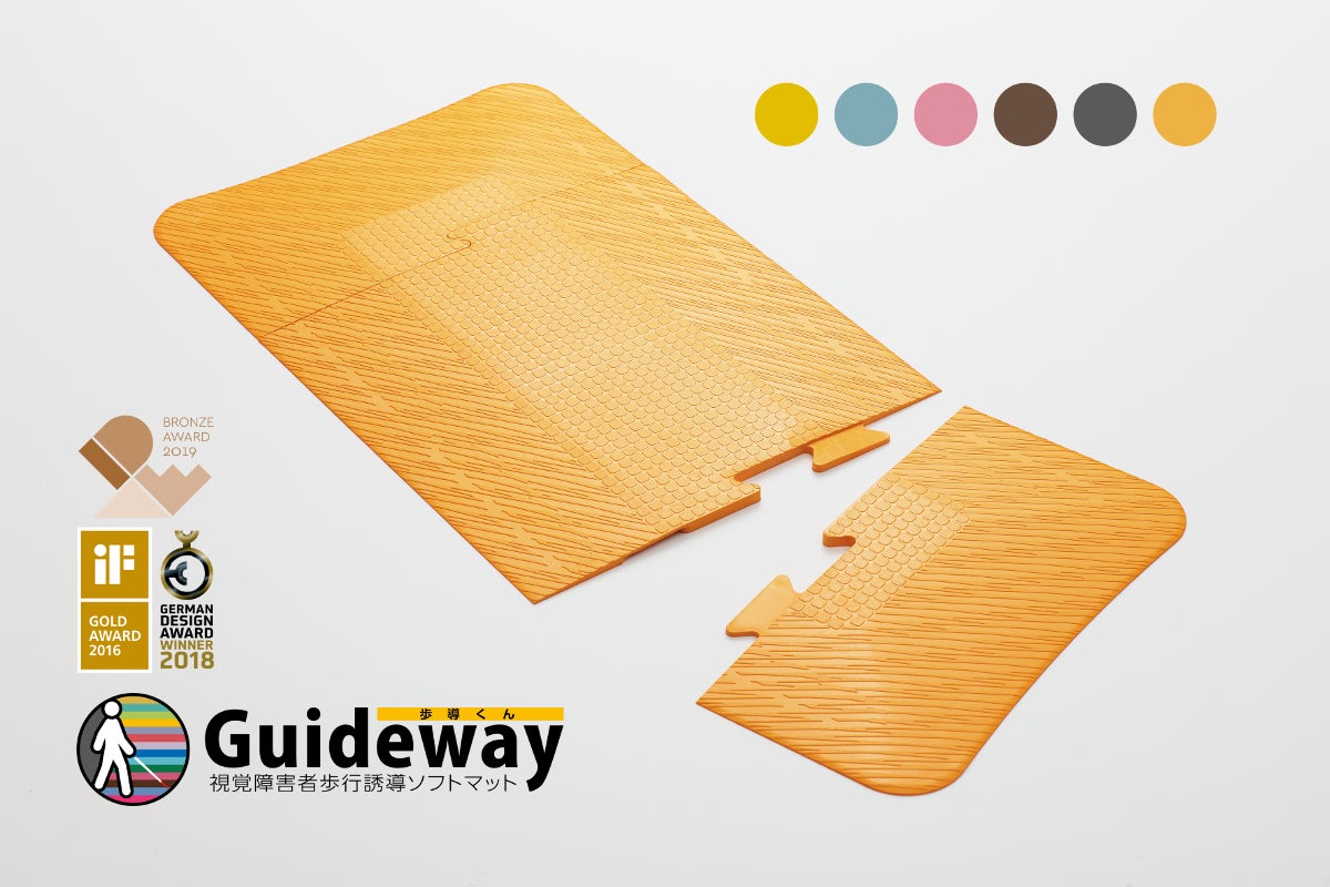 また従来の点字ブロックと違って、表面のでこぼこがなく、車椅子やベビーカーなども通りやくなっています。視覚障害のある方は、でこぼこがなくても、足裏の感触や白杖の音の違い、また弱視の場合は、床の色とマットの色の違いで、進む方向が分かるとのこと。ちなみにマットの色は黄色、茶色など6種類から選べます。既にシリーズ累計で、日本国内1200ヶ所以上に導入されたそうです。